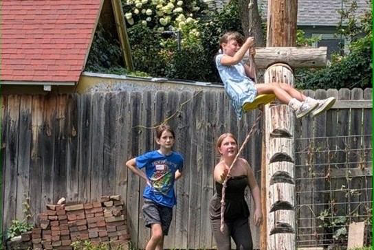 The Sallie Foster Adventure Playground is a play area that provides children with opportunities for unstructured free and open play in a setting that includes natural elements and materials, encouraging creativity, exploration, and self-directed risk-taking. It is part of the Gifford Park Community Garden near 35th & Cass Street. It features natural landscapes, loose parts for building and creating, and versatile play structures, all aimed at stimulating imagination, creativity, and problem-solving skills. We even have a two-story tree house and zip line!